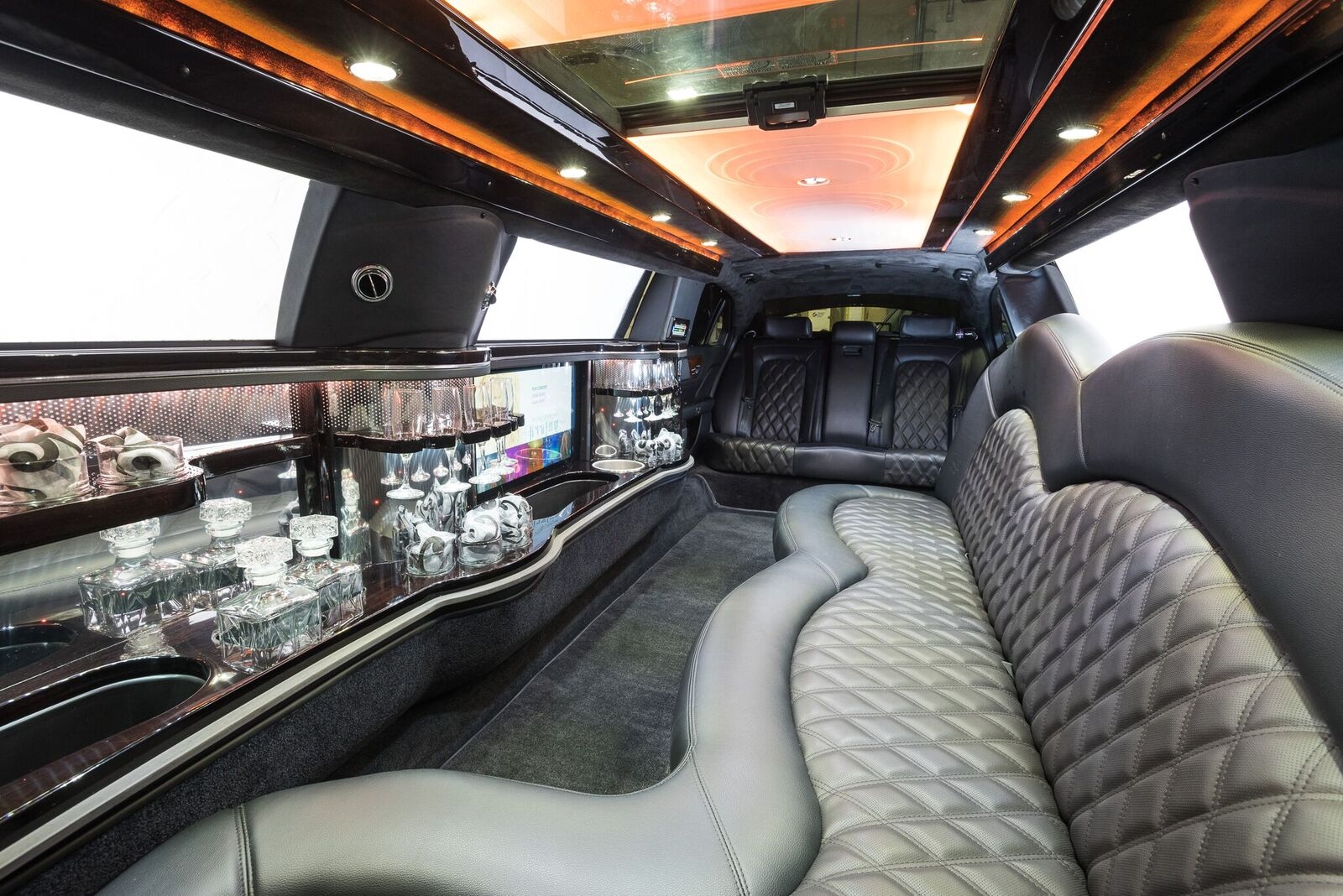 Amenities: New body style, Fiber optics, Bar, TV, DVD, adjustable rear seat, center console.
